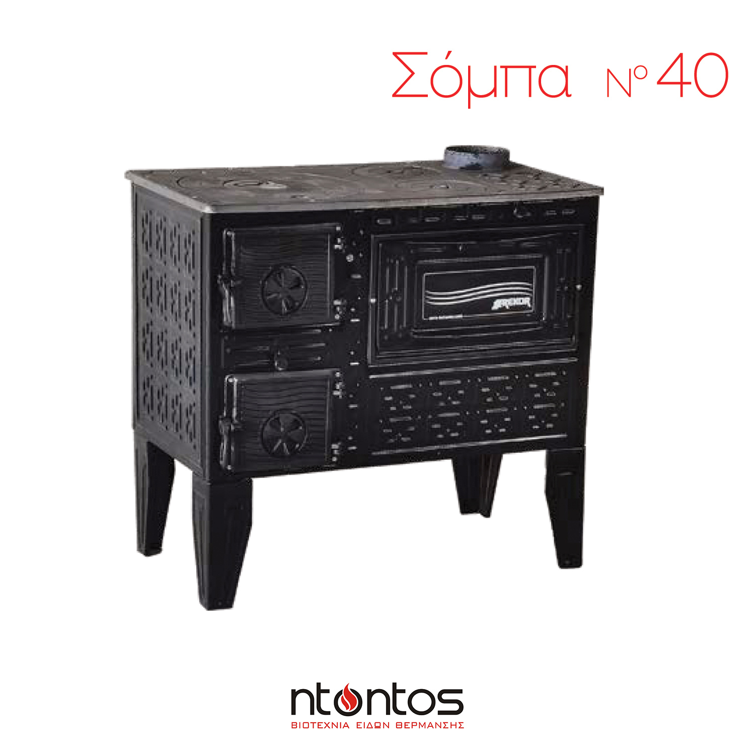 Σόμπα ξύλου με εστίες μαγειρέματος και φούρνο εμαγιέ Ν.40