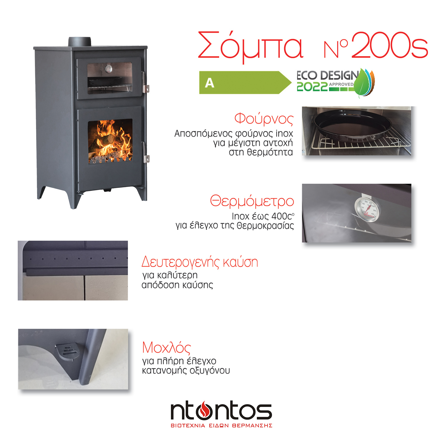Σόμπα ξύλου με φούρνο Ν.200 s
