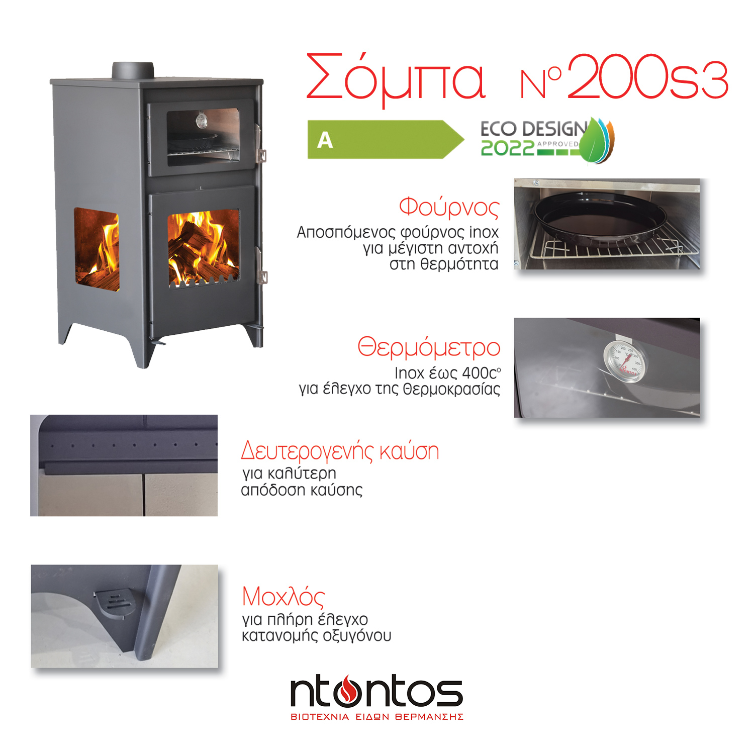 Σόμπα ξύλου πανοραμική με φούρνο Ν.200 s3